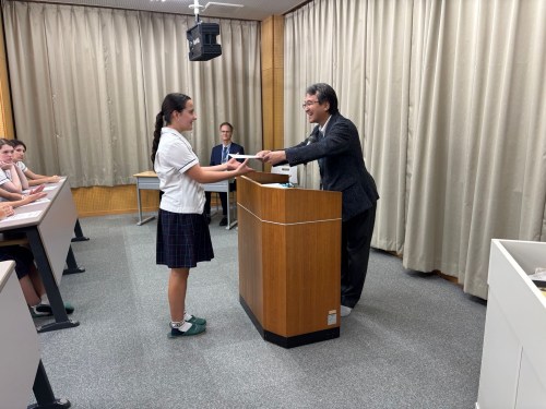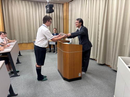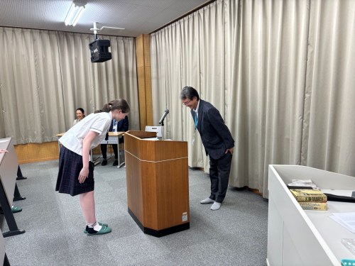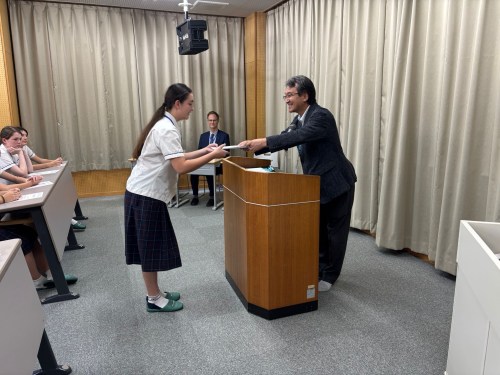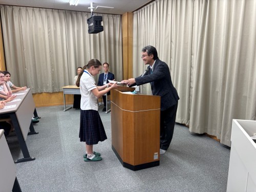 Today saw the last class visits and farewell ceremony. Here’s a few photos of our students receiving their certificate of merit for their endeavors of cross cultural exchange from principal Funato.